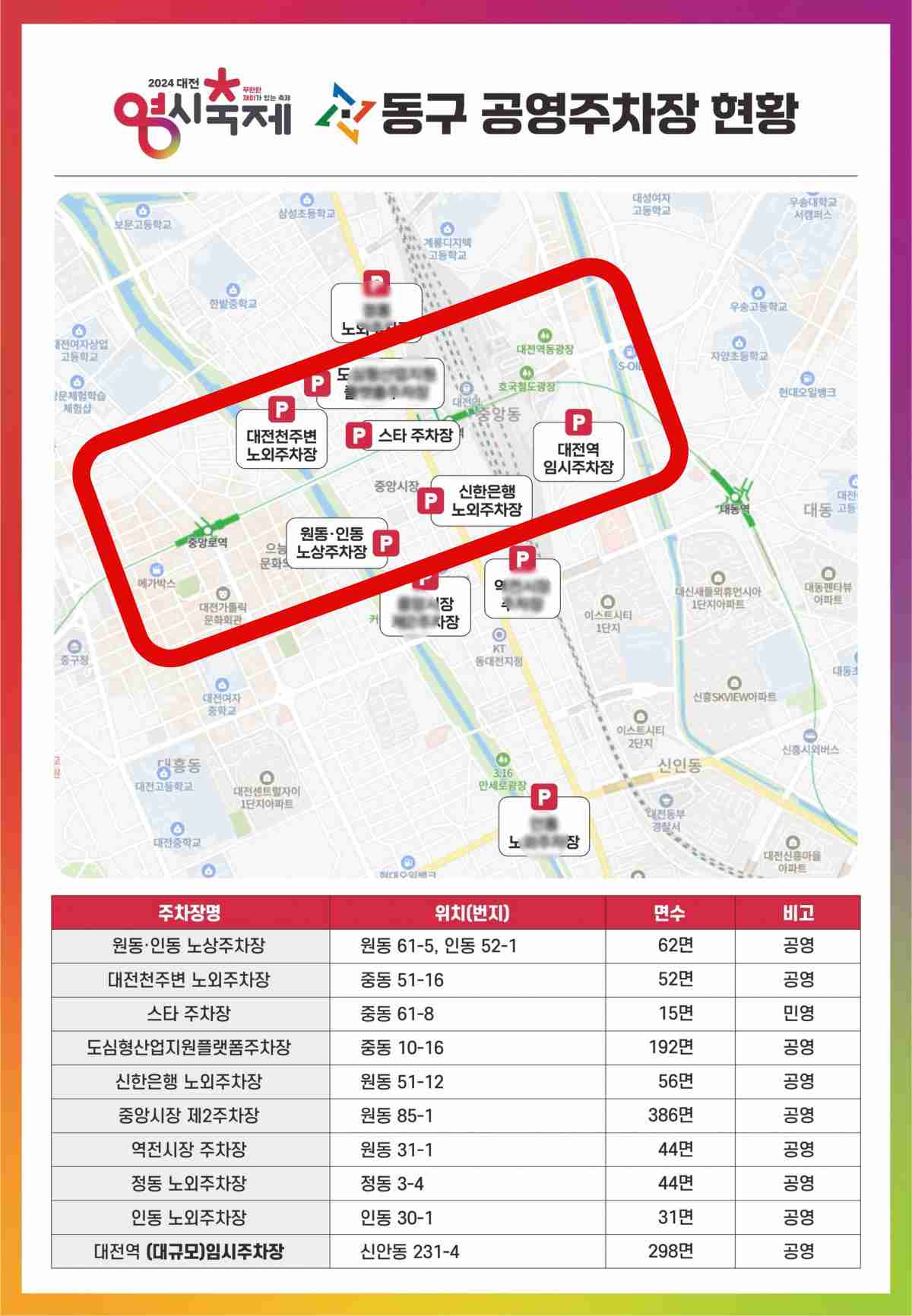 | 중구청 주차장 | 대흥동 499-1 | 147 |